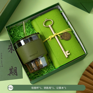 27. 竹カップ + キーペン + ノート + グリーンギフトバッグギフトボックス