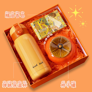 35. 魔法瓶カップ + 名画石鹸 + 柿瓶 + オレンジギフトバッグギフトボックス