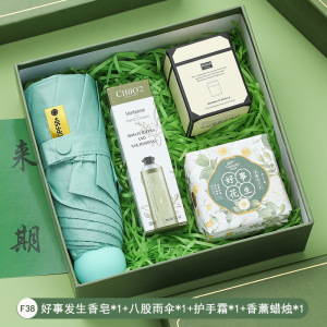 12.サニーアンブレラ+ハンドクリーム+グッドシングスソープ+アロマキャンドル+グリーンギフトバッグギフトボックス