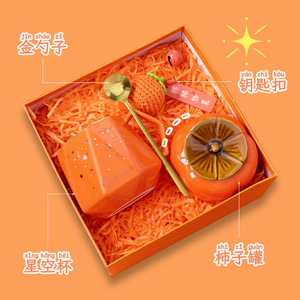 29. セラミックカップ + 小さな金のスプーン + 柿瓶 + キーホルダー + オレンジのギフトバッグギフトボックス