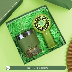 24. 竹カップ + 小さな扇風機 + 緑のギフトバッグ ギフトボックス