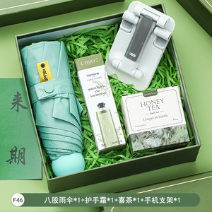 13.サニーアンブレラ+ハンドクリーム+フラワーティー+携帯電話フィンガーホルダー+グリーンギフトバッグギフトボックス