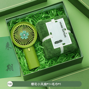26. 竹カップ + 小さな扇風機 + コーラルベルベットタオル + グリーンギフトバッグギフトボックス