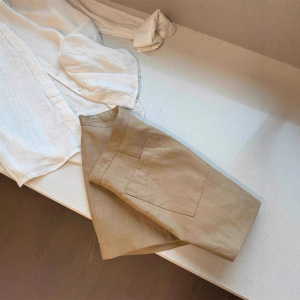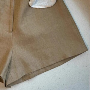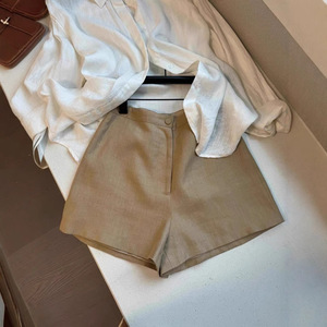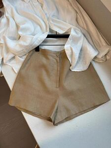 オールドマネースタイル〜女性用ハイカウント高密度カーキリネンショートパンツ、夏用高級薄手コットンとリネンのアウターウェア、スリムフィット