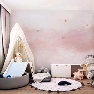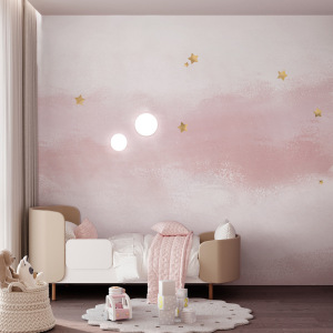 北欧スタイルの暖かいピンクの星の背景壁紙漫画子供部屋の壁紙女の子の寝室のライト高級装飾壁装材