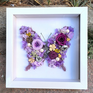 紫色の蝶ドライフラワークリスタルストーン素材パッケージ中空立体フォトフレーム中空蝶 diy バレンタインデーギフト