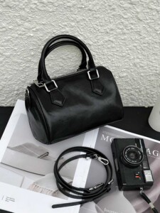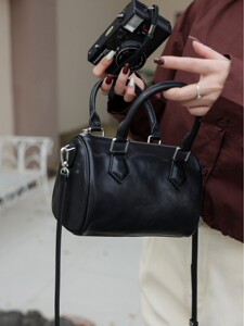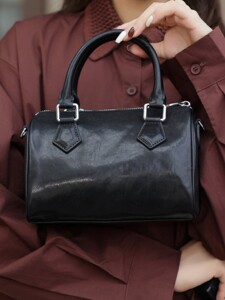Baidi レザーレディースバッグ 2025 新しいハイエンドボストンバッグ第一層牛革ボウリングバッグシングルショルダークロスボディバッグ