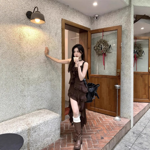 フランス式の美しいハスの葉の縁のサスペンダーのワンピースの女性の夏の気質の不規則な海辺の休暇は腰のa字のスカートを収めます。