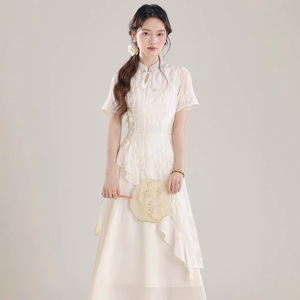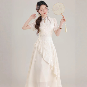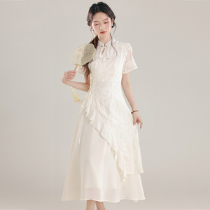 女性の 2025 十三行中国風不規則なフリルドレス新中国風のドレス改良されたチャイナドレス