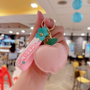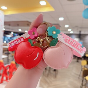 クリエイティブなフルーツペンダント意味ギフトインターネット有名人バレンタインデーピーチレザーキーホルダーピンクガールペンダント