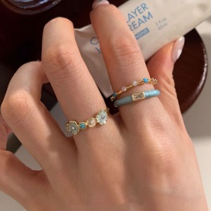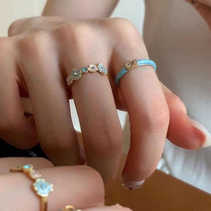 エナメルブルーオイルドリップジルコンフラワーオープンリングレディースライトラグジュアリーハイエンドスタッカブルニッチデザイン人差し指リング