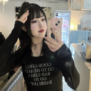 韓国バッドブラッドアメリカンレトロルーズ長袖Tシャツレディーストレンディホットガールニッチカジュアルレイジースタイルボトリングシャツ