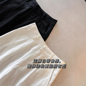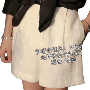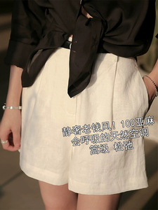 オールドマネースタイルリネンレディースバミューダカジュアルハイウエスト薄手リネンAラインストレートワイドレッグスーツショーツ女性夏用
