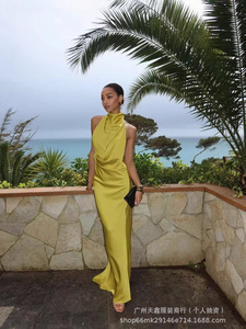 2025 夏アマゾン新ヨーロッパとアメリカのクロスボーダーホルターバックレス無地女性の気質ウエストドレスドレス