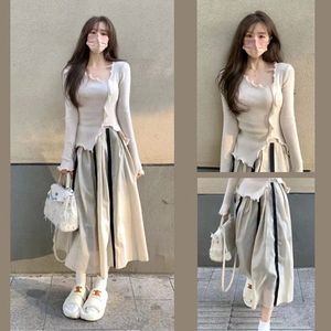 秋の香港風レトロソルトデザイン不規則な純粋な欲望の耳トップスカートテクスチャードツーピーススーツ