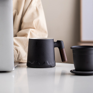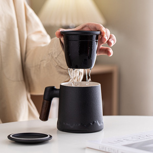 セラミックオフィスウォーターカップマグ茶水分離ティーカップ蓋付きフィルターウォーターカップギフトボックスギフトロゴカスタマイズ