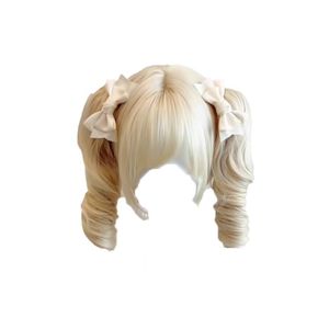 Xuchang ウィッグ ロリータウィッグ ロロ ダブルポニーテール ロングカーリーヘア ローマンカーリー ライトブロンドウィッグ 女性用フルヘッドギア
