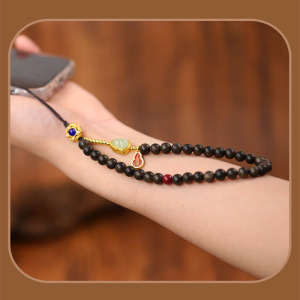 Ji Sheng Jiwen 文化的で創造的なペンダントジュエリー女性の祝福ひょうたん辰砂アクセサリー沈香ビーズ携帯電話チェーンペンダント