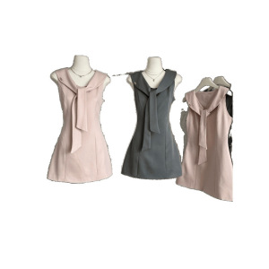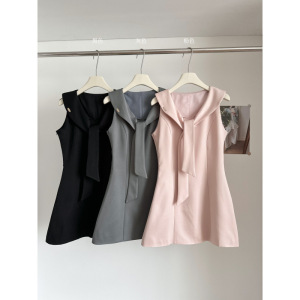 セナ 2025 新作夏 3 色ネイビーカラー A ラインドレスカレッジスタイルレースアップウエストノースリーブショートスカート