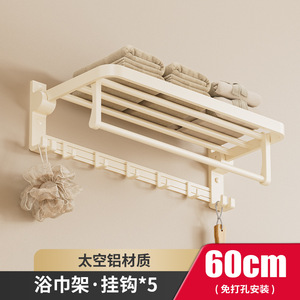 *アップグレードされたクリーム色 - 60cm二つ折りフック付きバスタオルラック(両用)