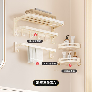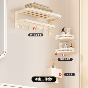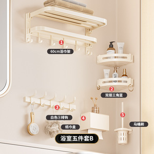 クリーム色のタオル掛け、穴あけ不要、スペースアルミ製、バスルームタオル収納ラック、トイレ用吊り下げアクセサリーセット、洗面所、トイレ