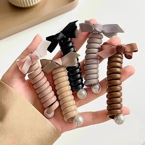 女性のためのシンプルなバブル編み込みヘアロープ 2025 新しいスタイルのリボンストレート電話コードヘアゴムハイポニーテールヘアロープ