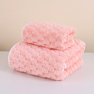 メーカー卸売クラウドチェック柄タオル、柔らかく吸収性、男女兼用、脱落しにくい、ベビーや子供向けのコーラルベルベットタオル
