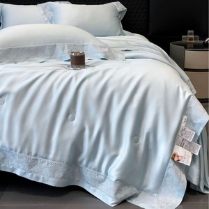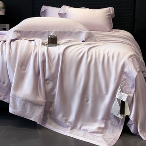 テンセル夏クール20%マルベリーシルク夏クールキルト4点セット軽い高級中空エッジ裸寝洗えるエアコンキルト