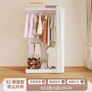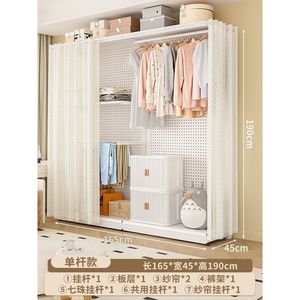 ホールボードワードローブ金属ハンガーラックホームベッドルームウォークインオープン防塵カーテンクローク組み立て棚