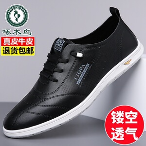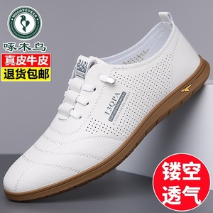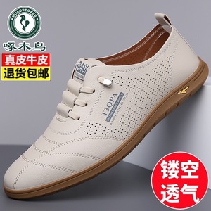 Woodpecker 2025 夏中空通気性紳士靴本革サンダルメンズカジュアル革靴メンズスリッポンドライビングシューズ