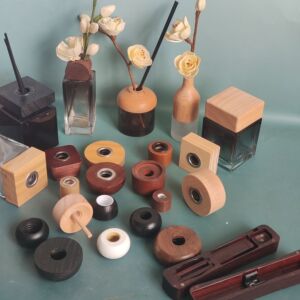 メーカー卸売不規則な 28 歯香水ボトル蓋ガラスボトル木製蓋無火籐アロマセラピー香水木製蓋