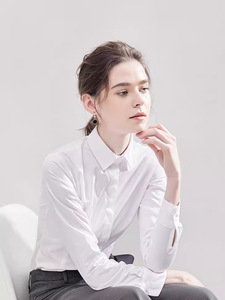 白シャツレディース長袖スリムノンアイロンビジネスシャツ気質通勤レディースシャツ刺繍ロゴ