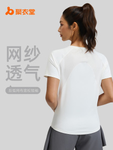 Juyitang 夏バックメッシュフィットネス半袖アウトドアランニング通気性速乾性スポーツ半袖 Tシャツ女性用