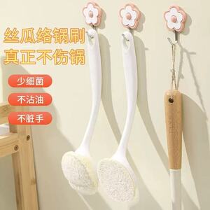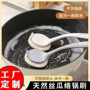 天然ヘチマポットブラシハンドル、ヘチマふきん、ハンドル付き雑巾、除染、油がこびりつきにくい、交換可能なヘッド付きたわし