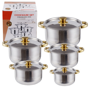 Amazonクロスボーダーステンレススープポットセット金メッキ双耳スープポットスチール蓋10点セット調理器具セット