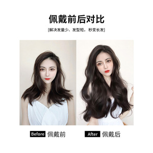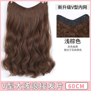 ロングヘアの女性用ウィッグ、U字型人工毛、大きなウェーブのかかった巻き毛、シームレスなふわふわ増毛ウィッグ