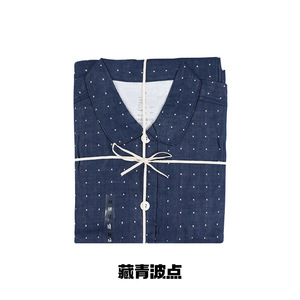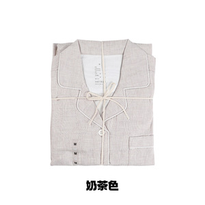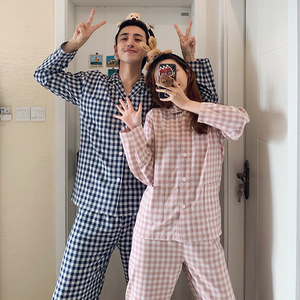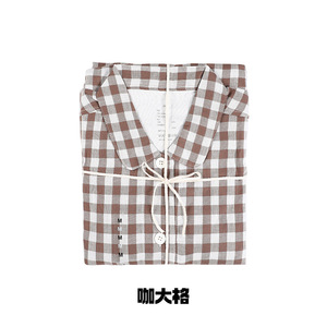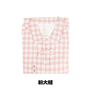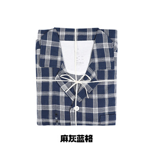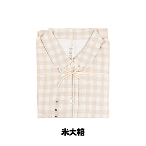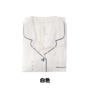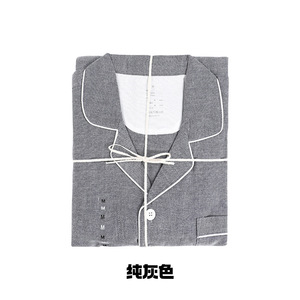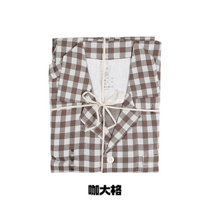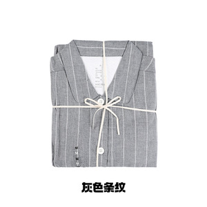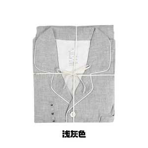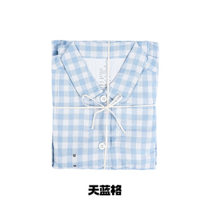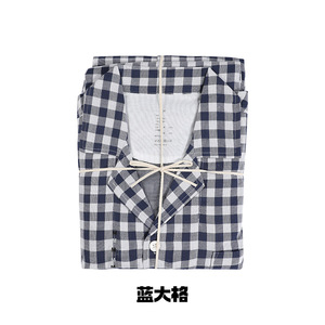 无侧缝春秋睡衣睡裤情侣款家居服 男女日系无印棉双层纱长袖套装