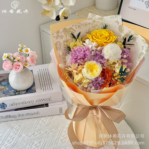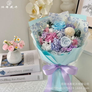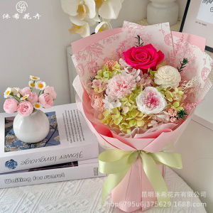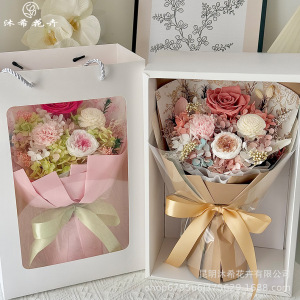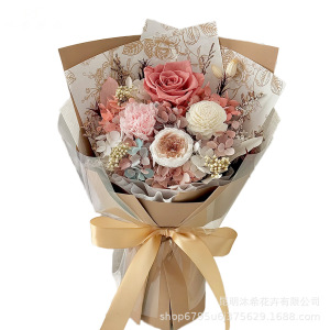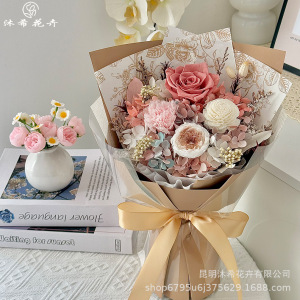 バレンタインデーの永遠の花束完成品本物の花ドライフラワーカーネーションローズブーケ永遠の花束ハイエンドの小さな花束