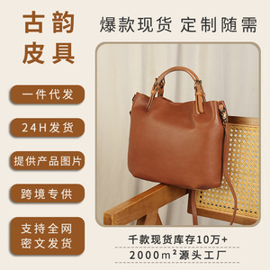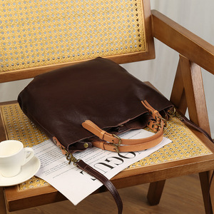 高級本革大容量ポータブルバケットバッグレディース新作シンプル通勤植物タンニン鞣し第一層牛革トートバッグ
