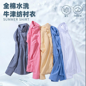 [新スタイル] メンズピュアコットン長袖ノンアイロンシャツ通気性ビジネスカジュアルユースソリッドカラーオックスフォードシャツ