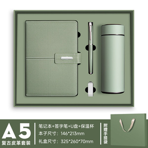 抹茶グリーン + メタルペン + 魔法瓶カップ + U ディスク + ギフトボックス ギフトバッグ