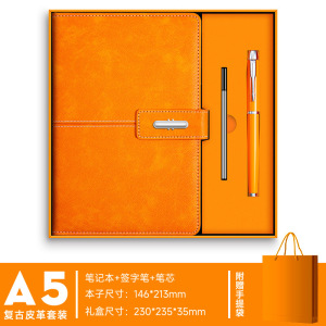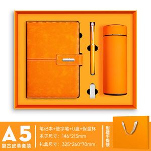 鮮やかなオレンジ + メタルペン + 魔法瓶カップ + U ディスク + ギフトボックス ギフトバッグ