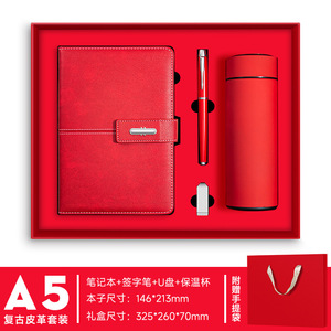 中国の赤 + メタルペン + 魔法瓶カップ + U ディスク + ギフトボックスギフトバッグ