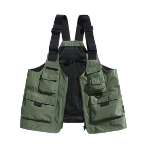作業服日本のレトロなマルチポケット機能的なスタイルのベストノースリーブベストベスト兼用ショルダーバッグジャケットメンズトレンディなプリント