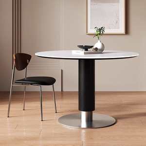中世スタイルのスレートラウンドテーブルシンプルなホーム小さなアパートレストラン交渉テーブルデザイナーラウンド無垢材トラバーチンダイニングテーブル