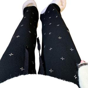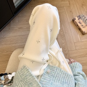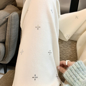 秋冬の女性用ホワイトヘビーデューティーホットダイヤモンドニットもち米パンツ、柔らかく厚みのあるストレートハイウエストのゆったりとしたカジュアルパンツ
