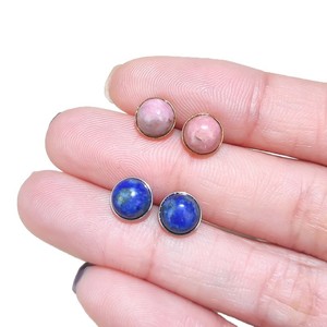 新品天然水晶青金不锈钢圆形耳钉小众优雅气质耳坠跨境批发