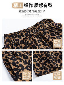 ヒョウ柄ショーツレディース夏薄手2025新作ハイウエストカジュアルアウターアメリカンスポーツミッドパンツワイドレッグ5点パンツ