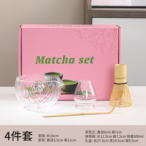 クロスボーダーインスタイル ガラス抹茶セット 8点セット 和風茶筌 抹茶茶碗 茶筌スタンド