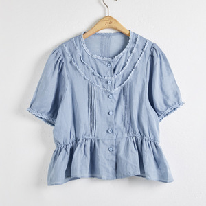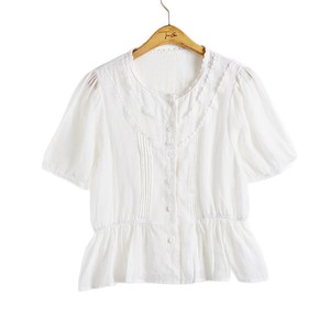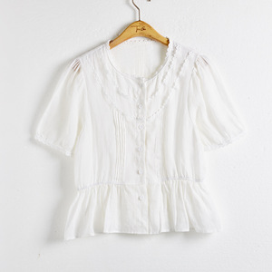 上海ラネージュ韓国レースラウンドネック半袖シャツ女性のための 2025 夏の新しいラミールーズトップ 250216